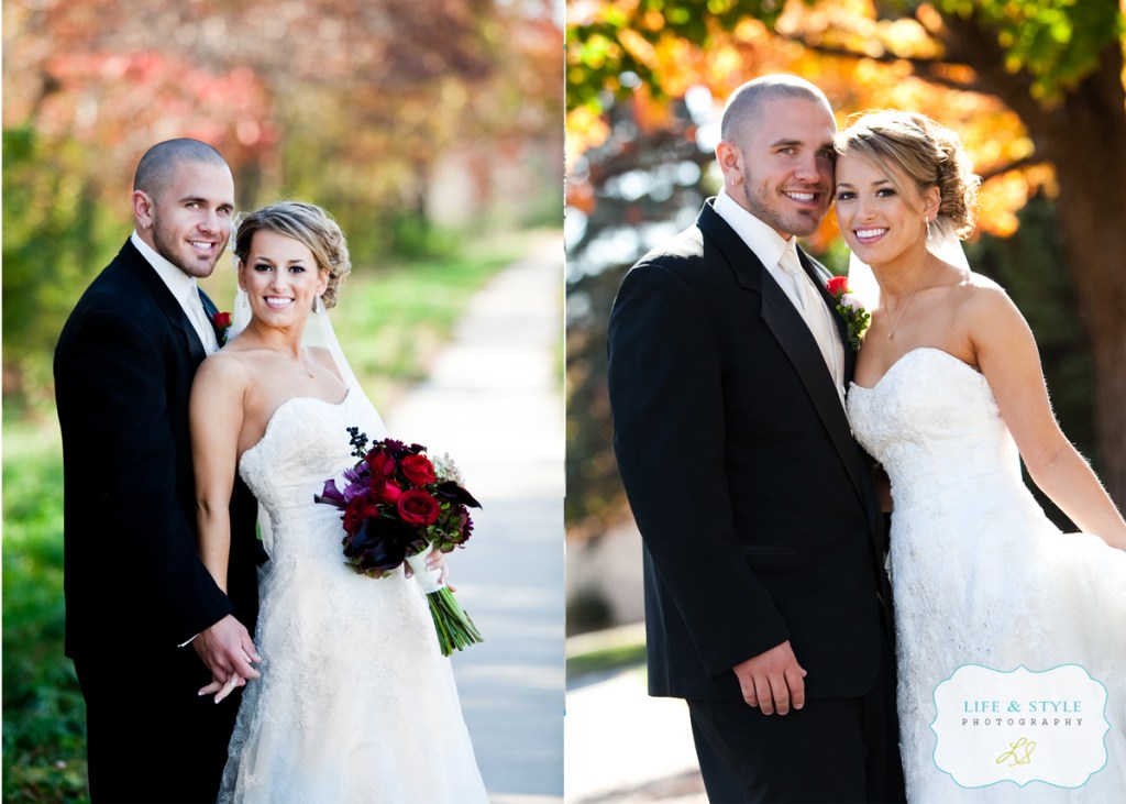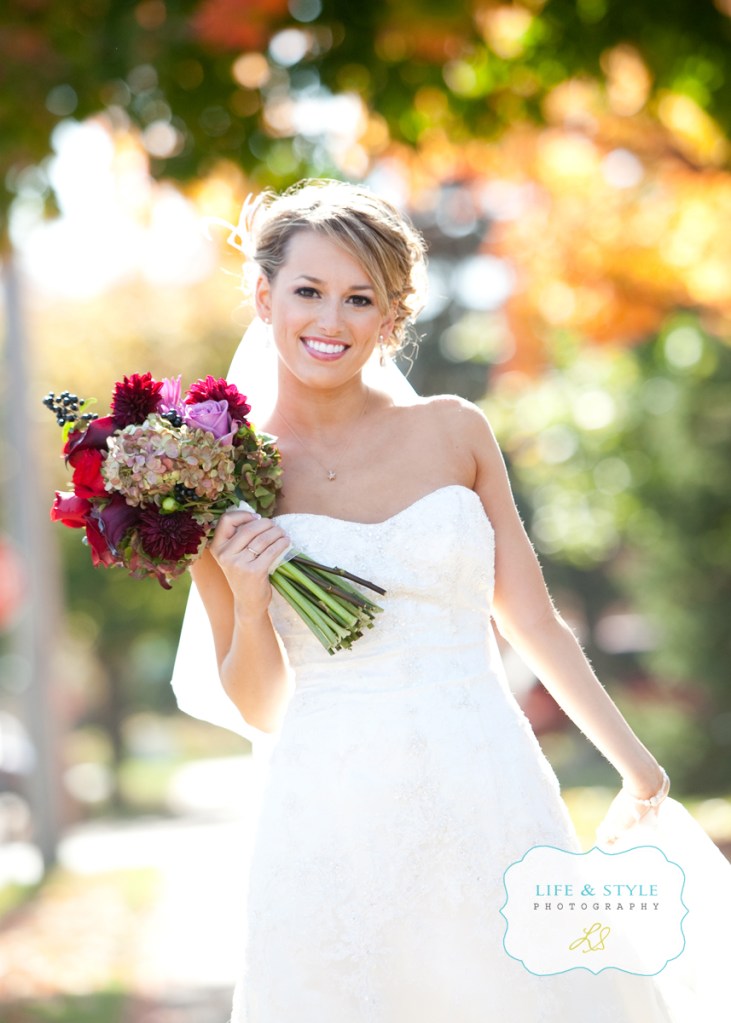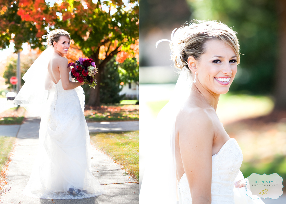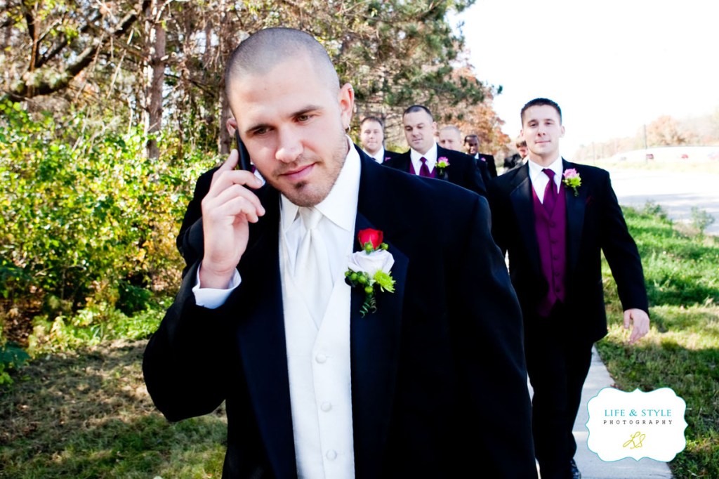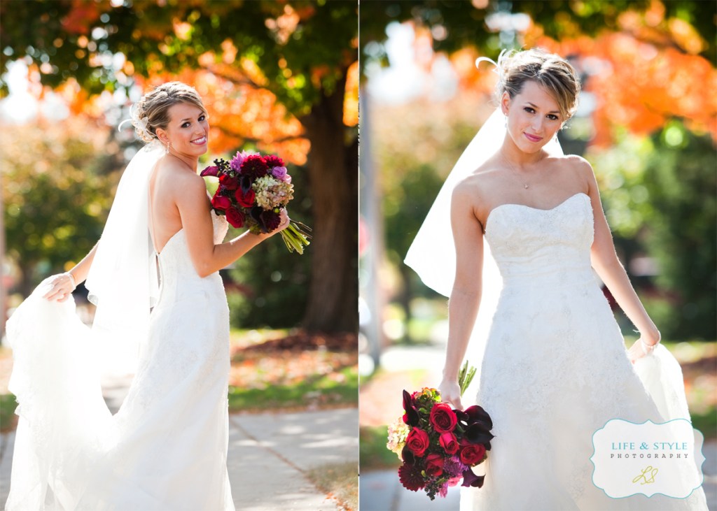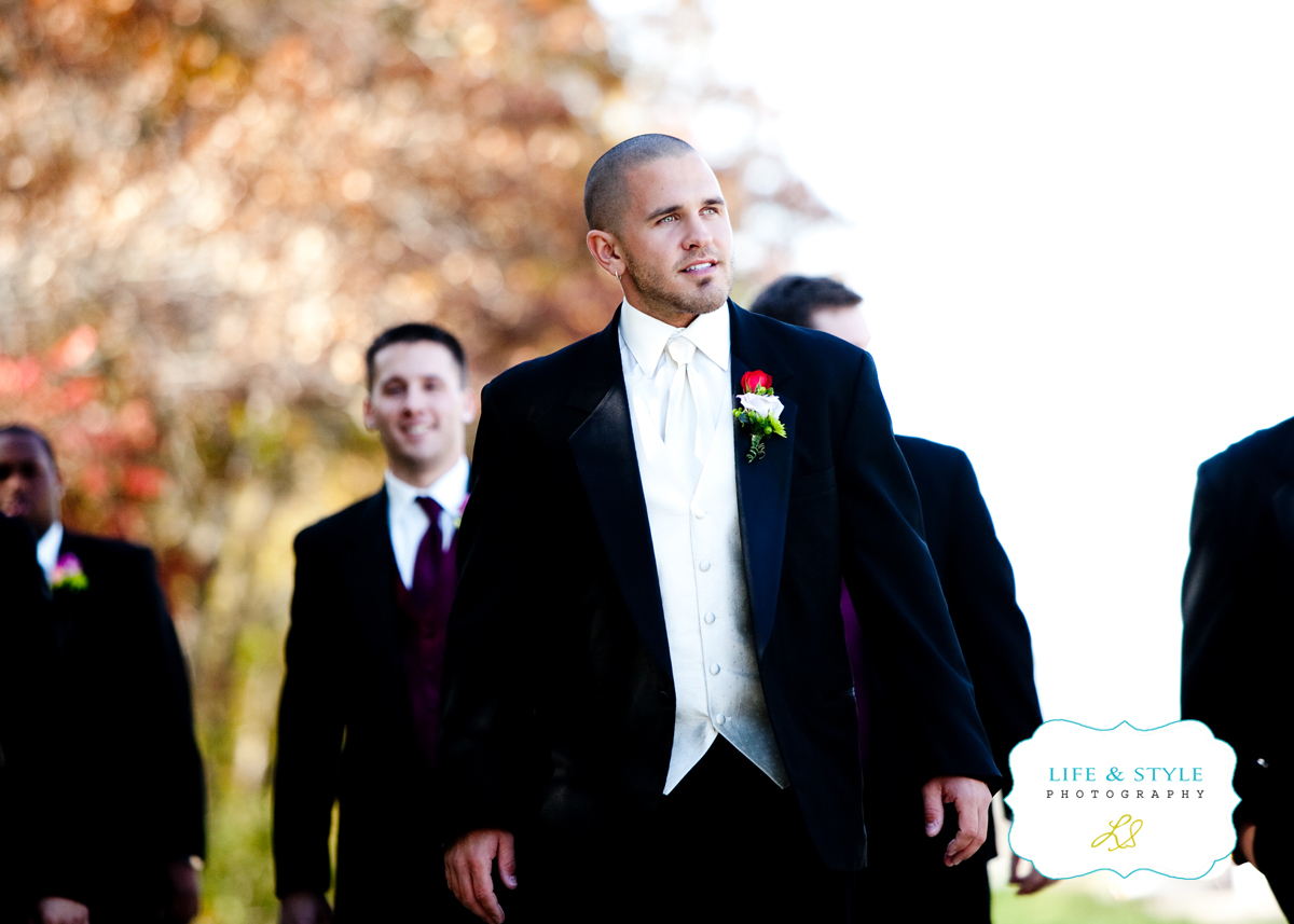 Heather was a total doll when I met her.  She’s beautiful and sweet and totally has a camera presence.  She is about the easiest person I’ve ever photographed.  Jared is a lucky guy and he knows it.  You would think that their wedding was the easiest day of photography for me….well, no. I’m being honest, it wasn’t.  The sun was bright and the leaves had mostly fallen so we struggled in the morning to find even shade to work with.   Their church was nice, but not one that you would want a lot as a background, so we were left with the parking lot and the sidewalk with I think the last tree that was holding onto its leaves before winter. I love that tree.  It gave me a beautiful backdrop and it’s shade to work under. I seriously could have hugged it!  Here’s Jared taking a walk with his boys, thinking about the biggest day of his life…
