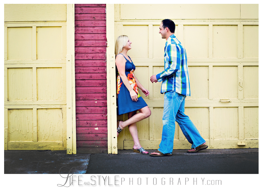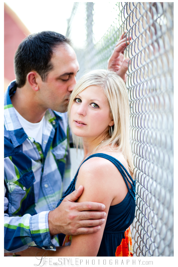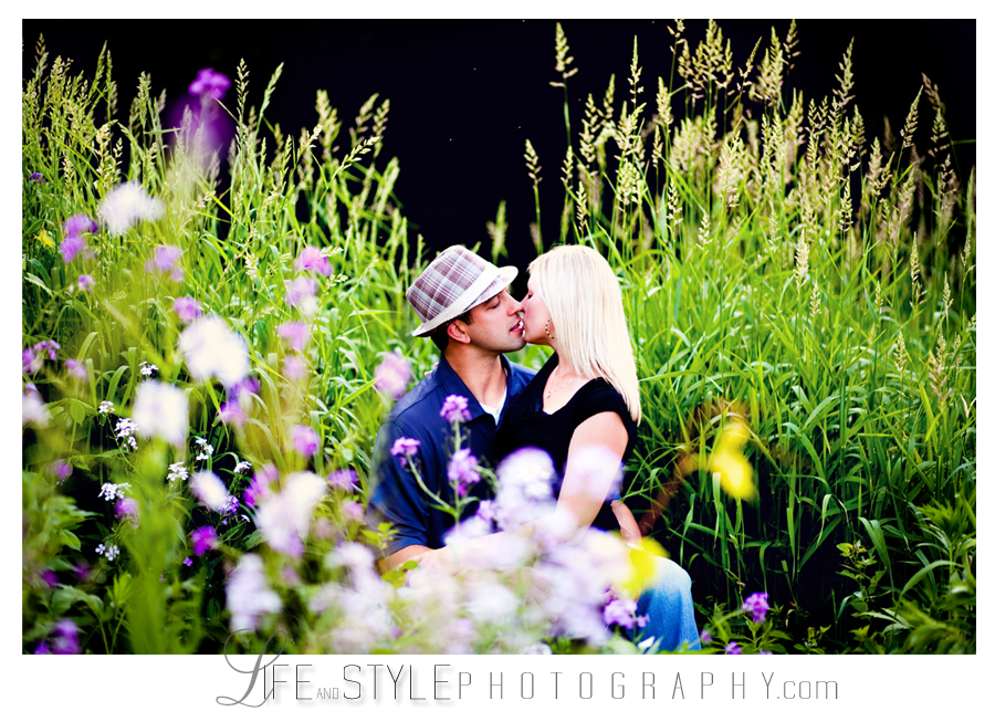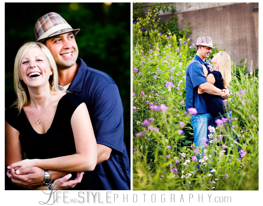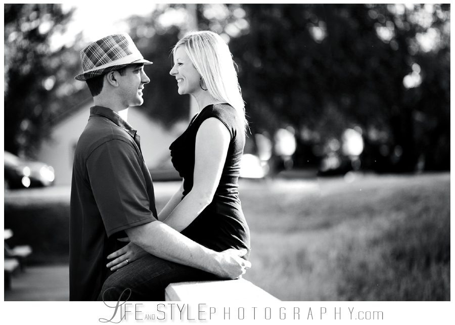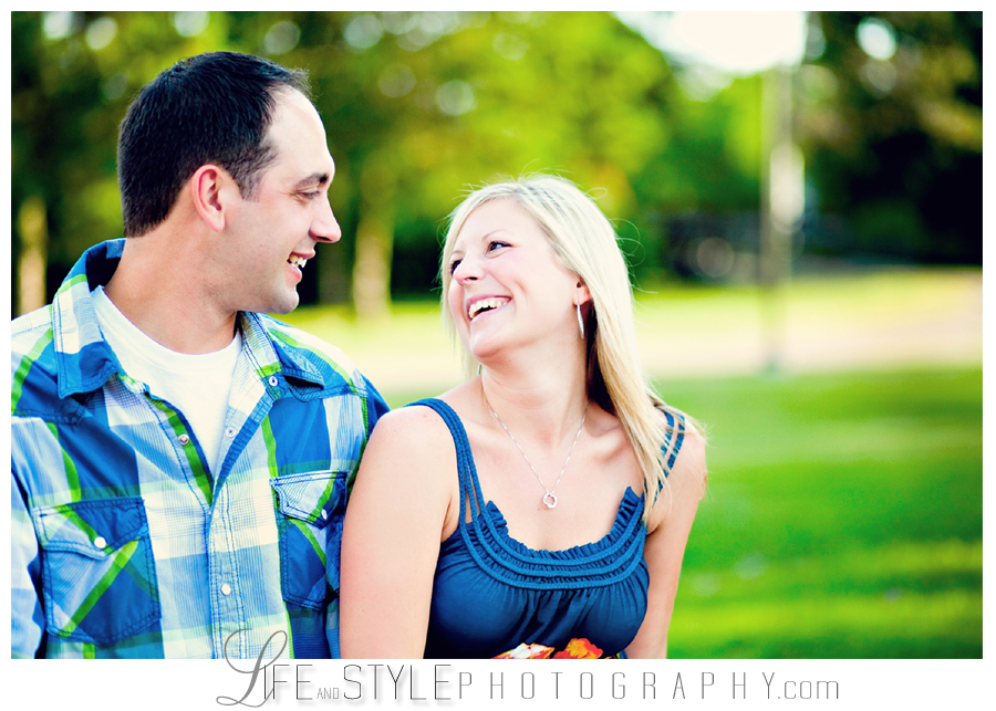 Kim and Jason’s engagement photos were taken on an evening where I couldn’t have asked for better light. In between a lot of laughs and swatting bugs, they managed to nail the moment before the kiss creating my favorite image from the session (below). They were both naturals in front of the camera – making my job very easy and I’m so looking forward to photographing their August wedding!