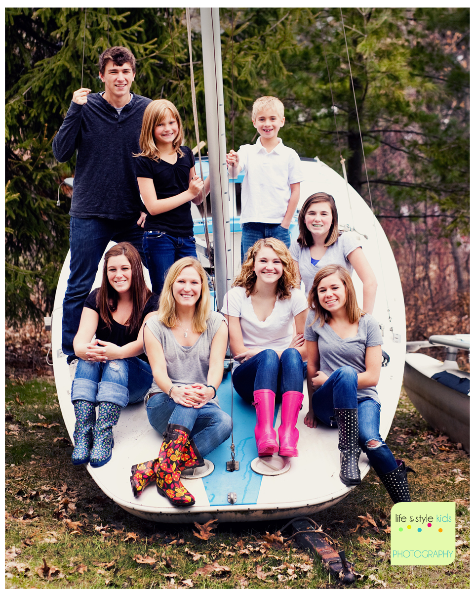 All these brothers and sisters spend much of their summer at Camp Manitou, so there was no better place for a family photo! If only the day had been nicer. It was about 35 degrees and so windy. Thanks to all 8 of you for braving the cold! They are doing this for a Mother’s Day gift…..so shhhhhh if you know them. It’s going to be a surprise!