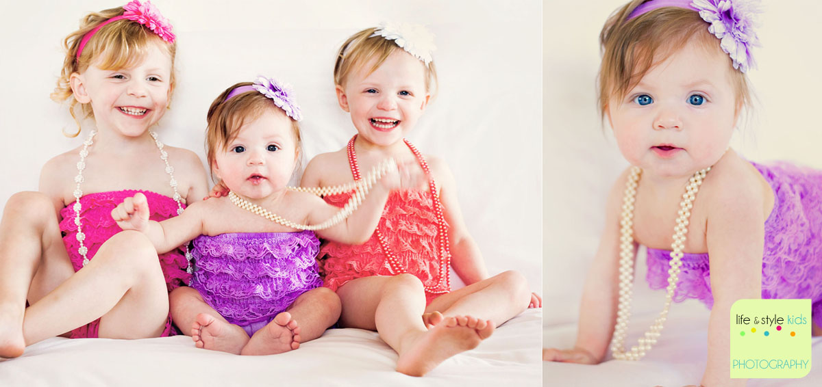 These beautiful girls (and dad) came to the studio for pictures on a day that was actually fairly warm, just very breezy. I’ve posted a few previews of baby Lyla on facebook and I think I confused a few people. She is not my Layla, although they do look similar! Their mom, Jen, bought these darling outfits on Etsy…the pearls I believe belonged to Jen’s grandma. Loved the colors..